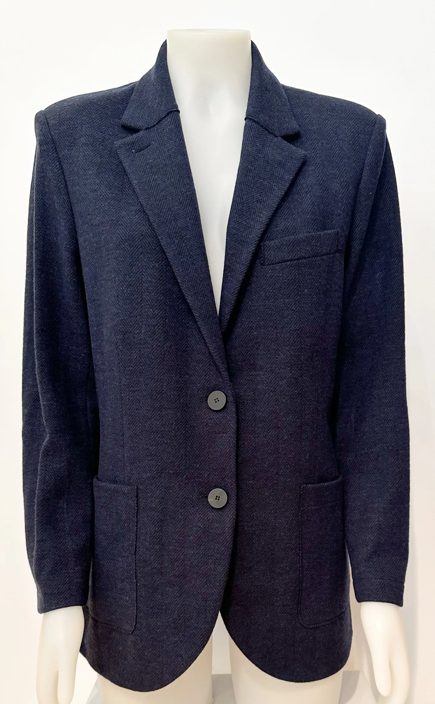 einreihig mit 2 KnöpfenReverskragen2 aufgesetzte TaschenungefüttertHerringbone Musterwie ein Strickblazer !Farbe Navy4…