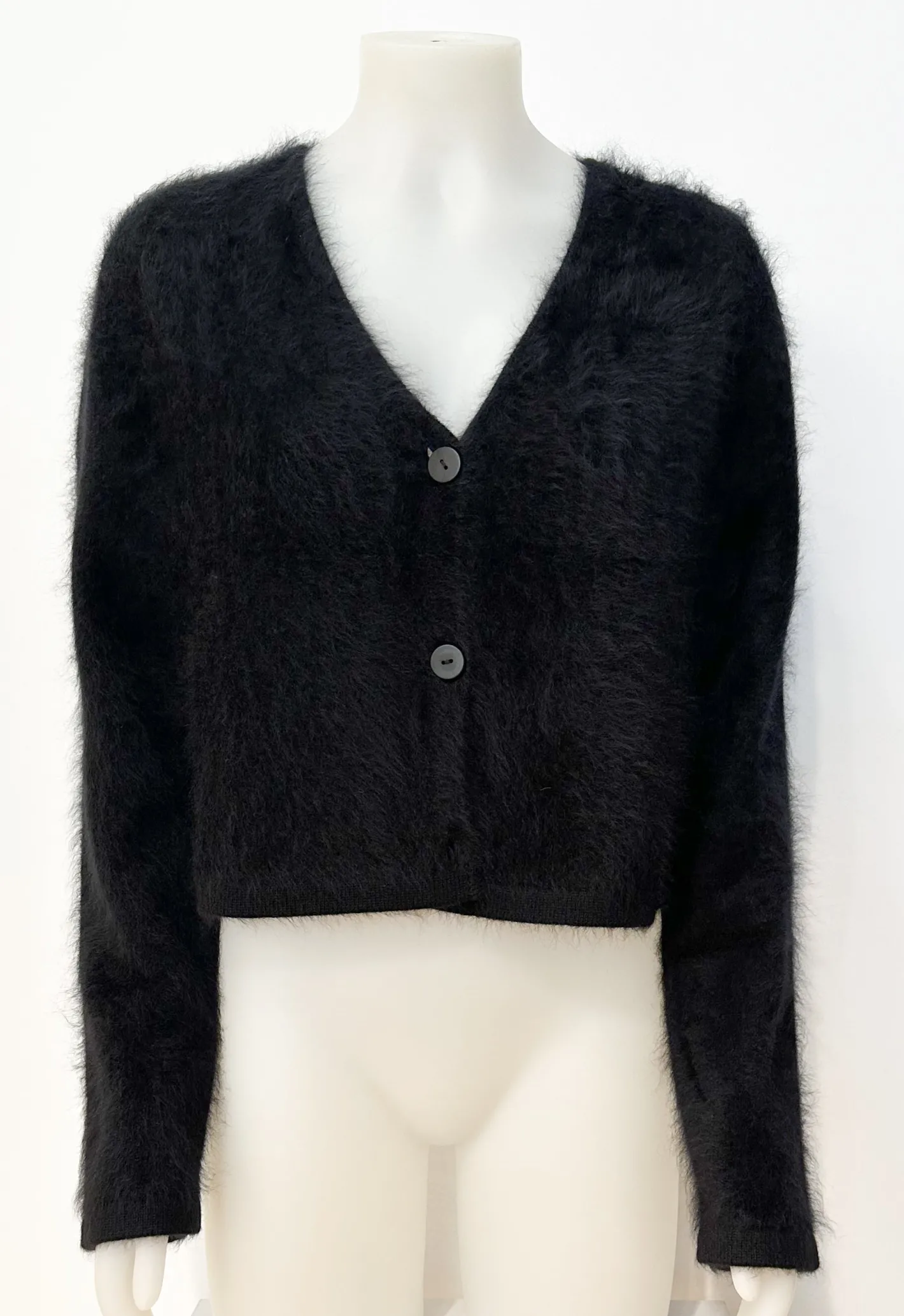 kurz, gerade geschnittenV-Ausschnittgebürstetes Cashmere super softFarbe Schwarz100% Cashmere