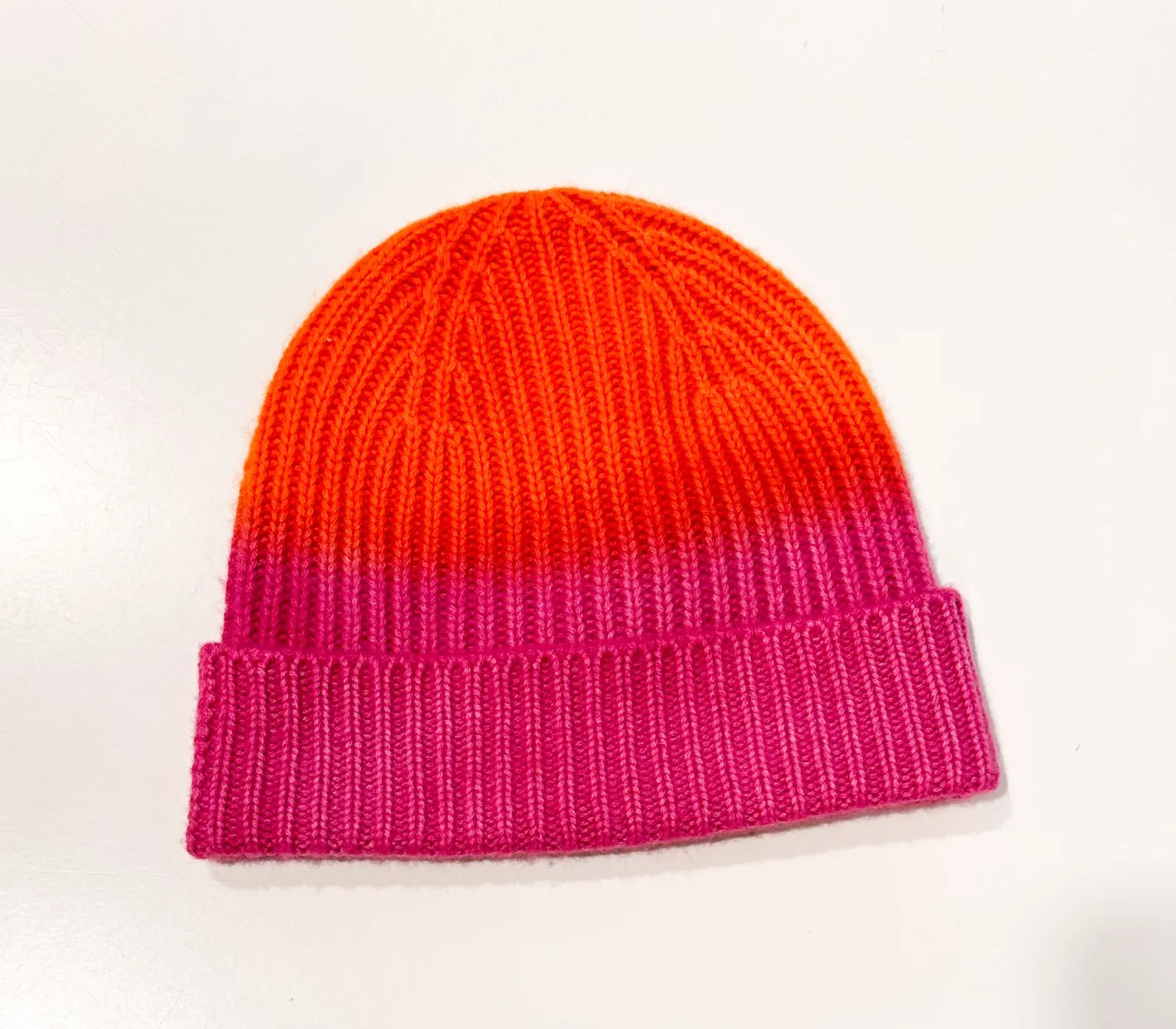 Ripp StrickMütze mit Farbverlauf100% Cashmere