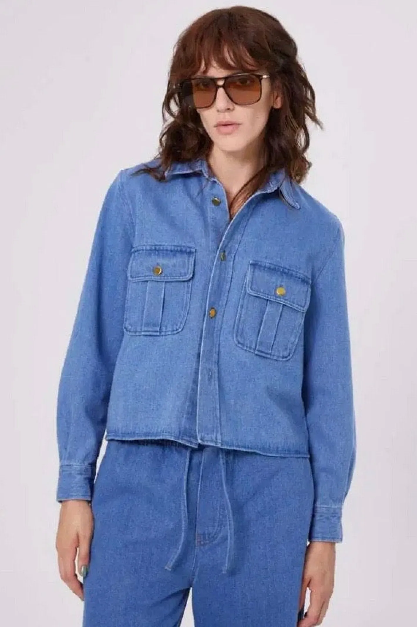 Damenjacke Denim in BlauJeansoptikGerader SchnittUmlegekragenSchließt mit KnöpfenAufgesetzte BrusttaschenCroppedHoher …