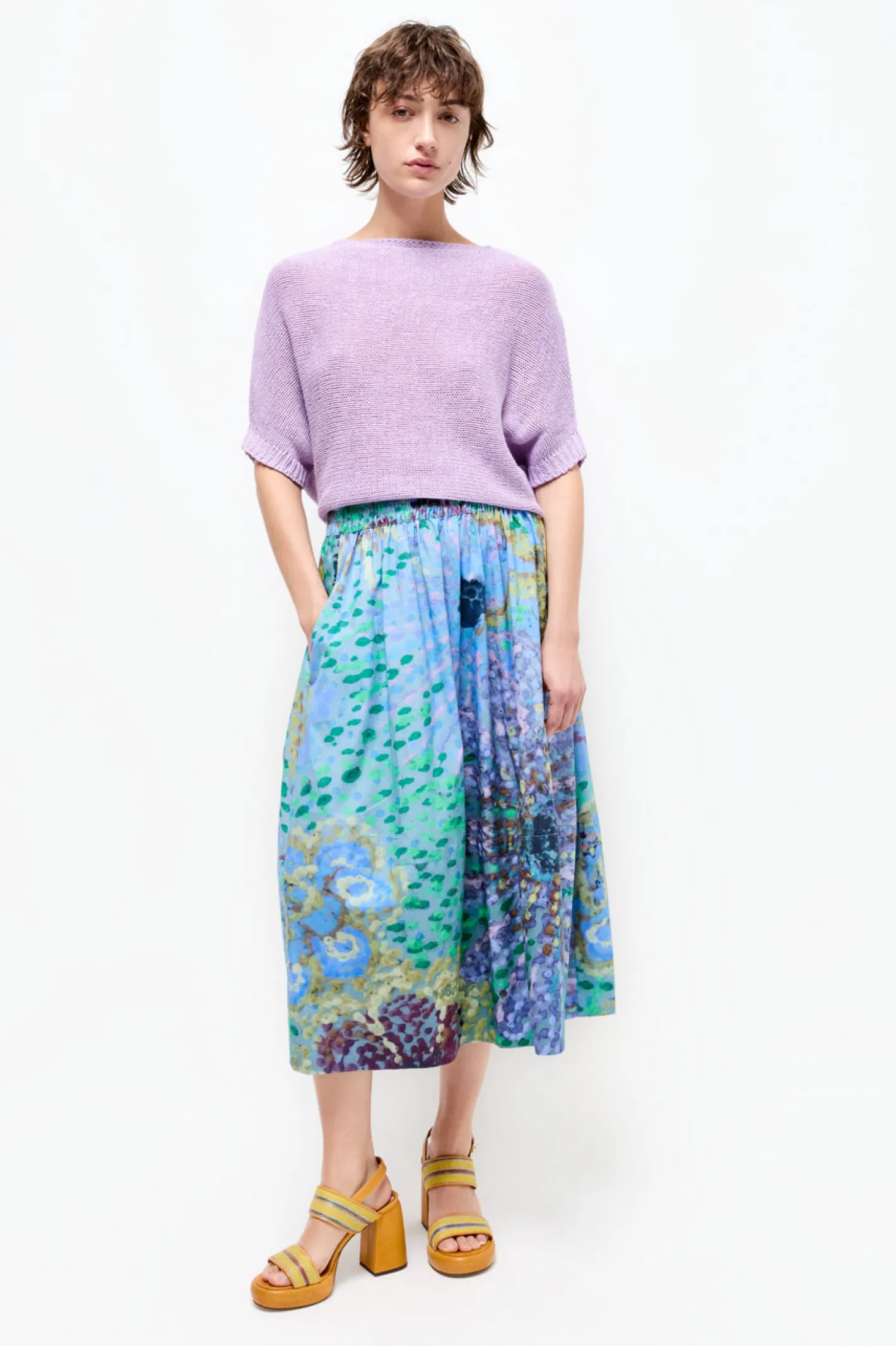 Baumwollrock mit Gummibundseitliche NahttaschenMidi LängeOnesize Size 2100% Baumwolle
