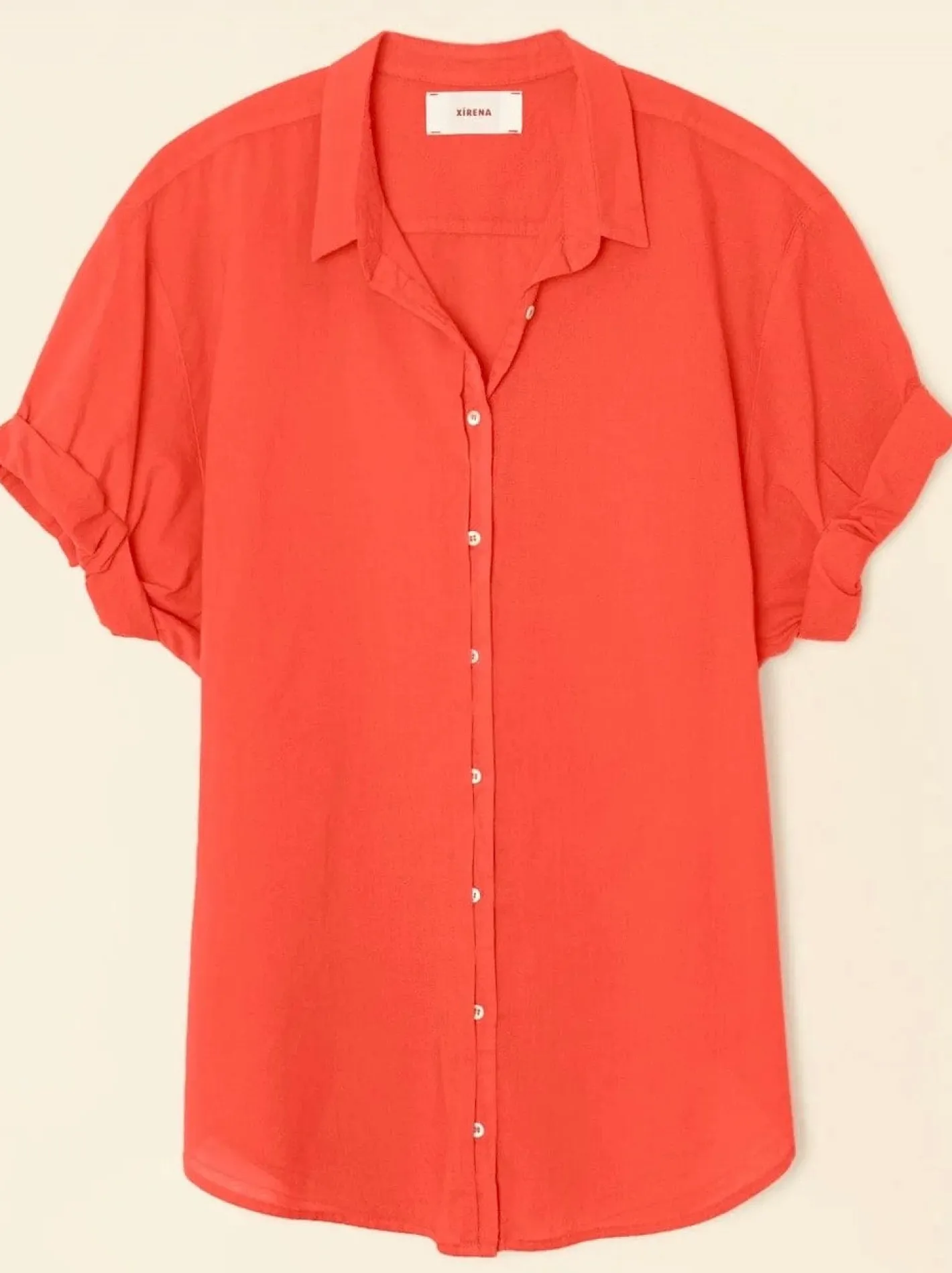 HemdbluseKrempelarmHermdblusenkragenabgerundeter Saumweicher Baumwoll PopelinFarbe Orange Sunset100% Baumwolle