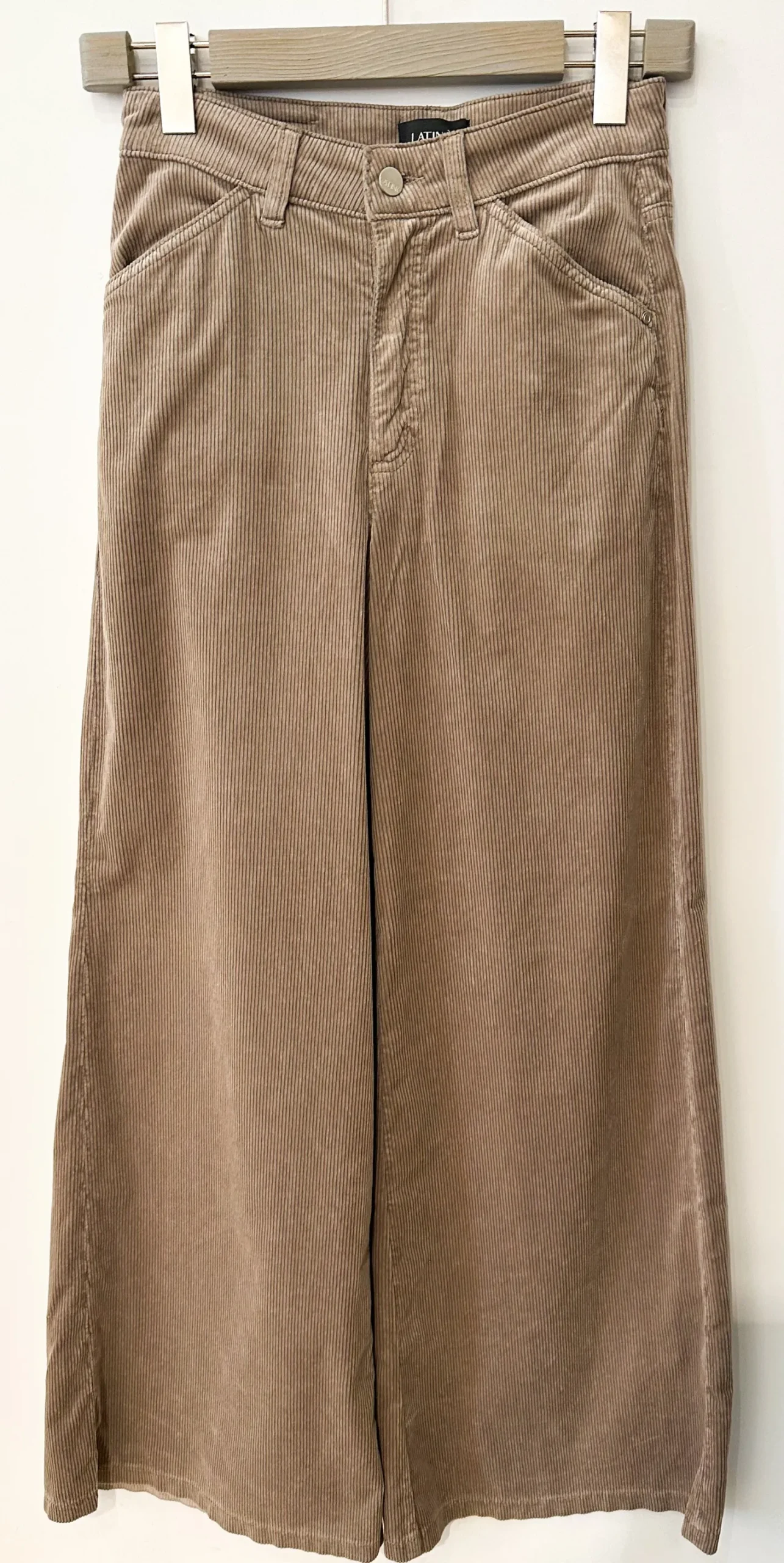 oben schmal nach unten weites Beinschräge Stecktaschen2 Po TaschenFarbe Taupe52% Baumwolle 24% Modal 22% Polyester 2% E…