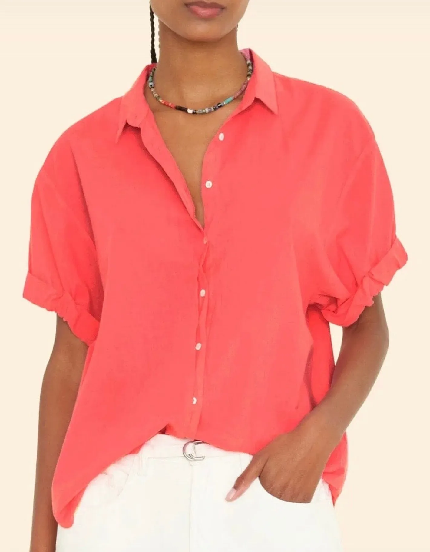 HemdbluseKrempelarmHermdblusenkragenabgerundeter Saumweicher Baumwoll PopelinFarbe Clambake100% Baumwolle