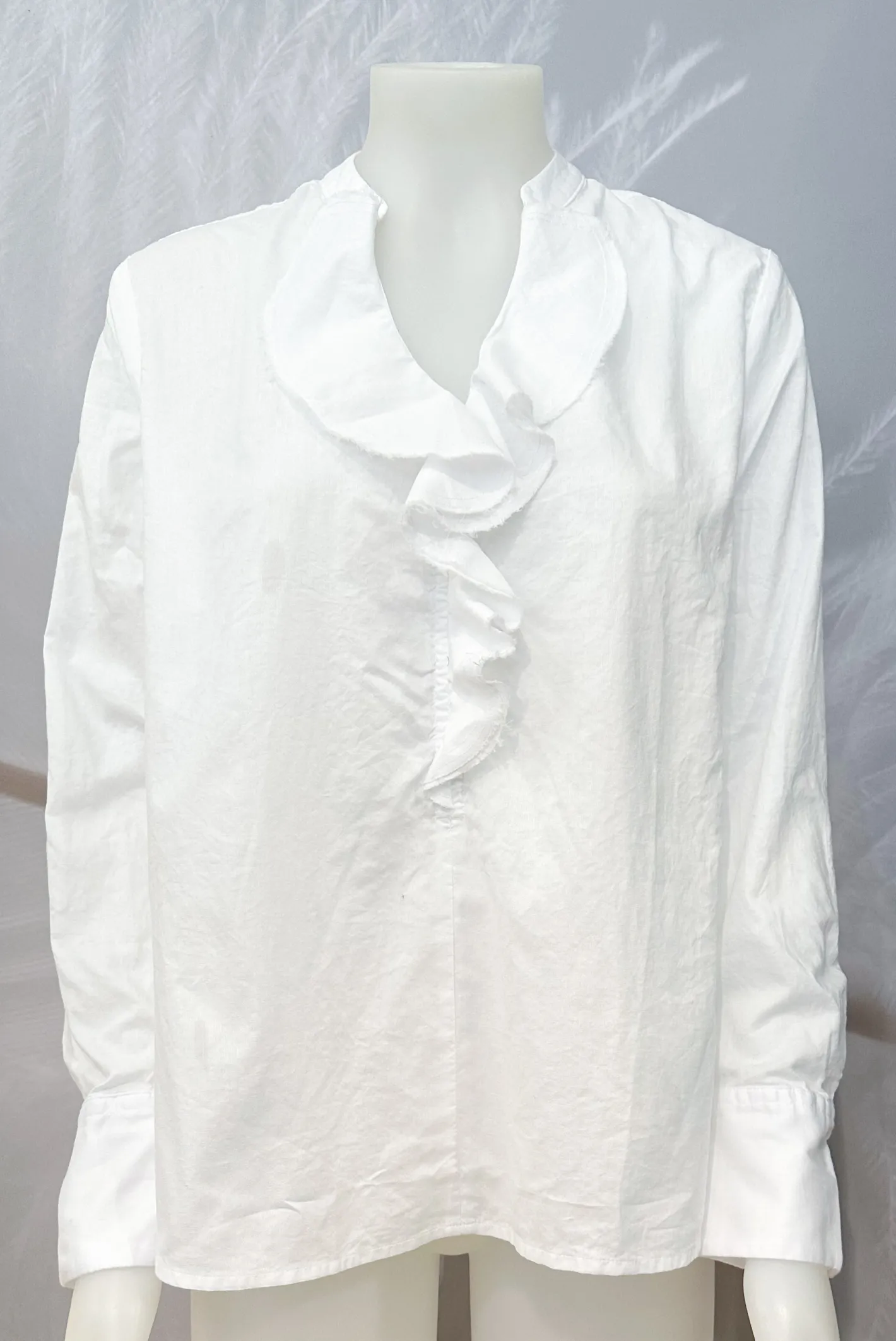 Rüschen am Ausschnitt mit geschnittenen KantenV-Ausschnittohne KragenLoose FitManschettenärmelRückenpasse in Falten g…