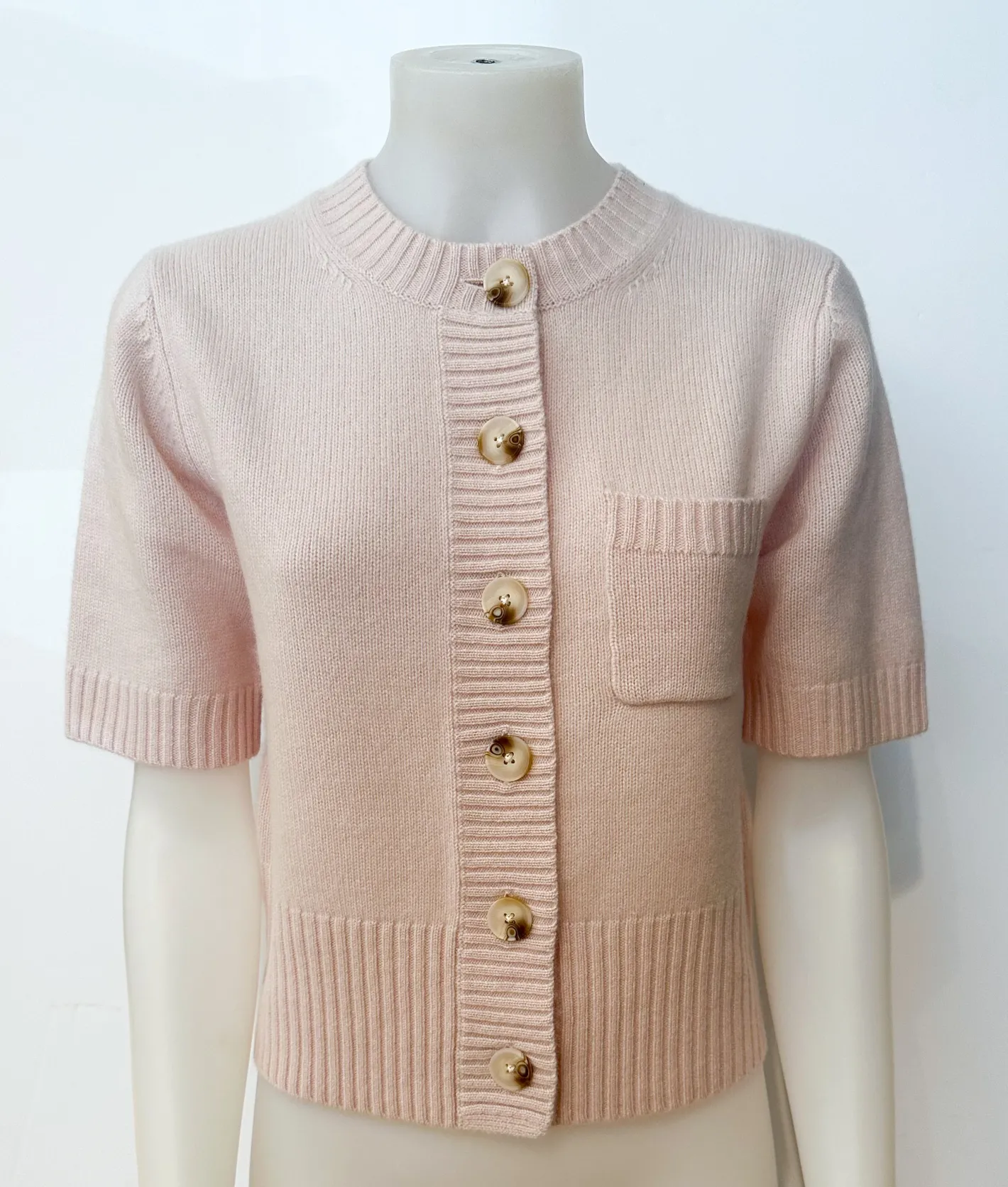 kurzer Cardigan 1/2 Armschmal geschnittenRipp BündchenRundhals Ausschnittkleine BrusttascheFarbe Rosé100% Cashmere
