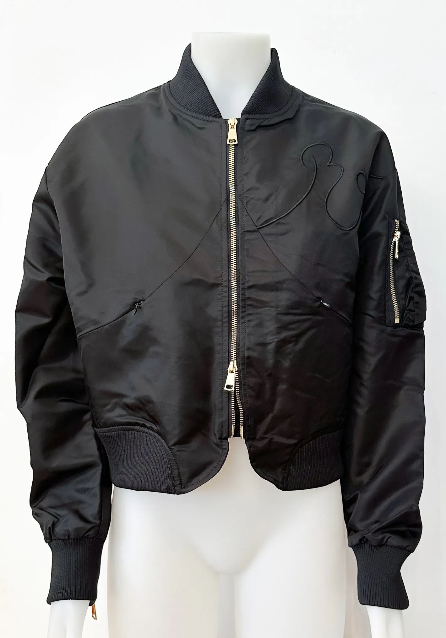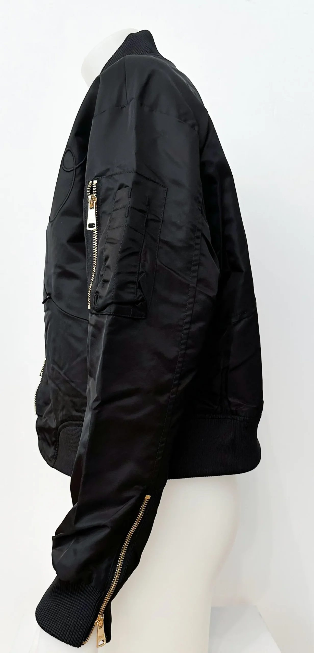 kurze BomberjackeStrickbündchenabgerundeter SaumEingriffstaschen2-Wege Metall ReißverschlussReißverschlüsse am Ärme…