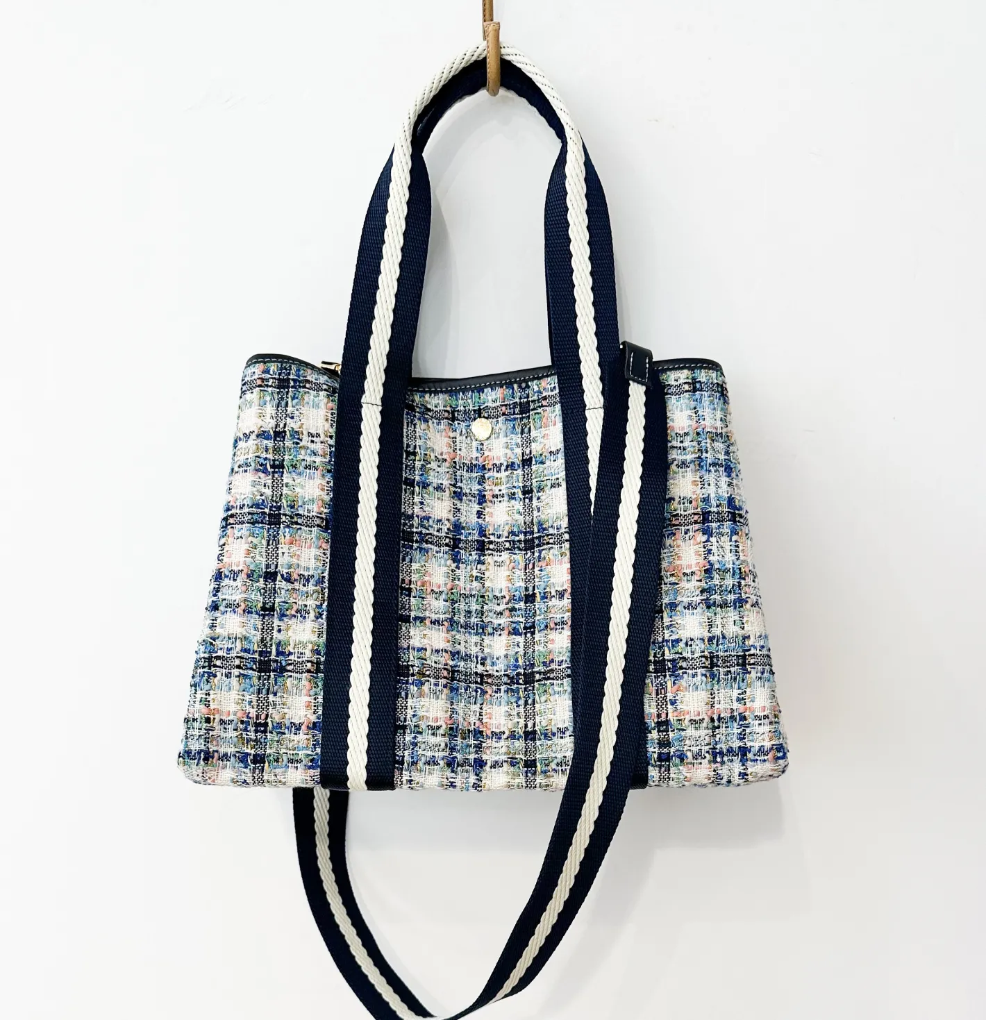 Tweed Tasche mit StrapGröße M 34cm x 26cm x 16cmFarben Blau/Weiß