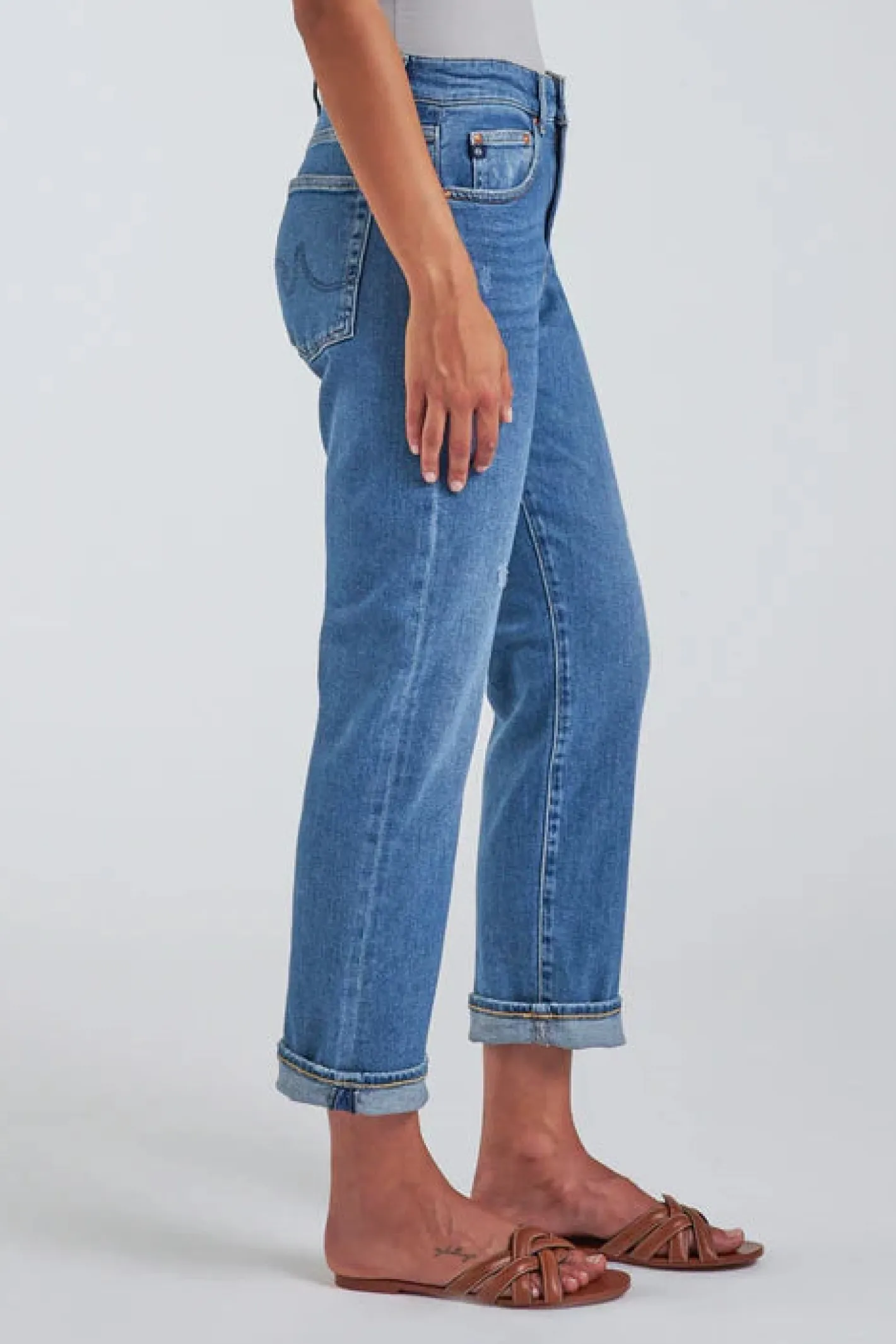 Mid Riseschmales, verkürztes Beindestroyed DetailsRippsFarbe Mittleres Blau98% Baumwolle 2% Elasthan