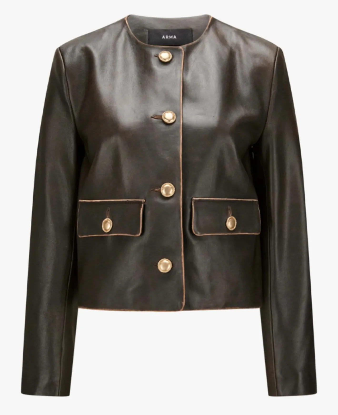 gerade geschnittenRundhals AusschnittKnopfleiste mit MetallKnöpfen in Gold2 Klappen TachenÄrmelschnitze zum KnöpfenVi…