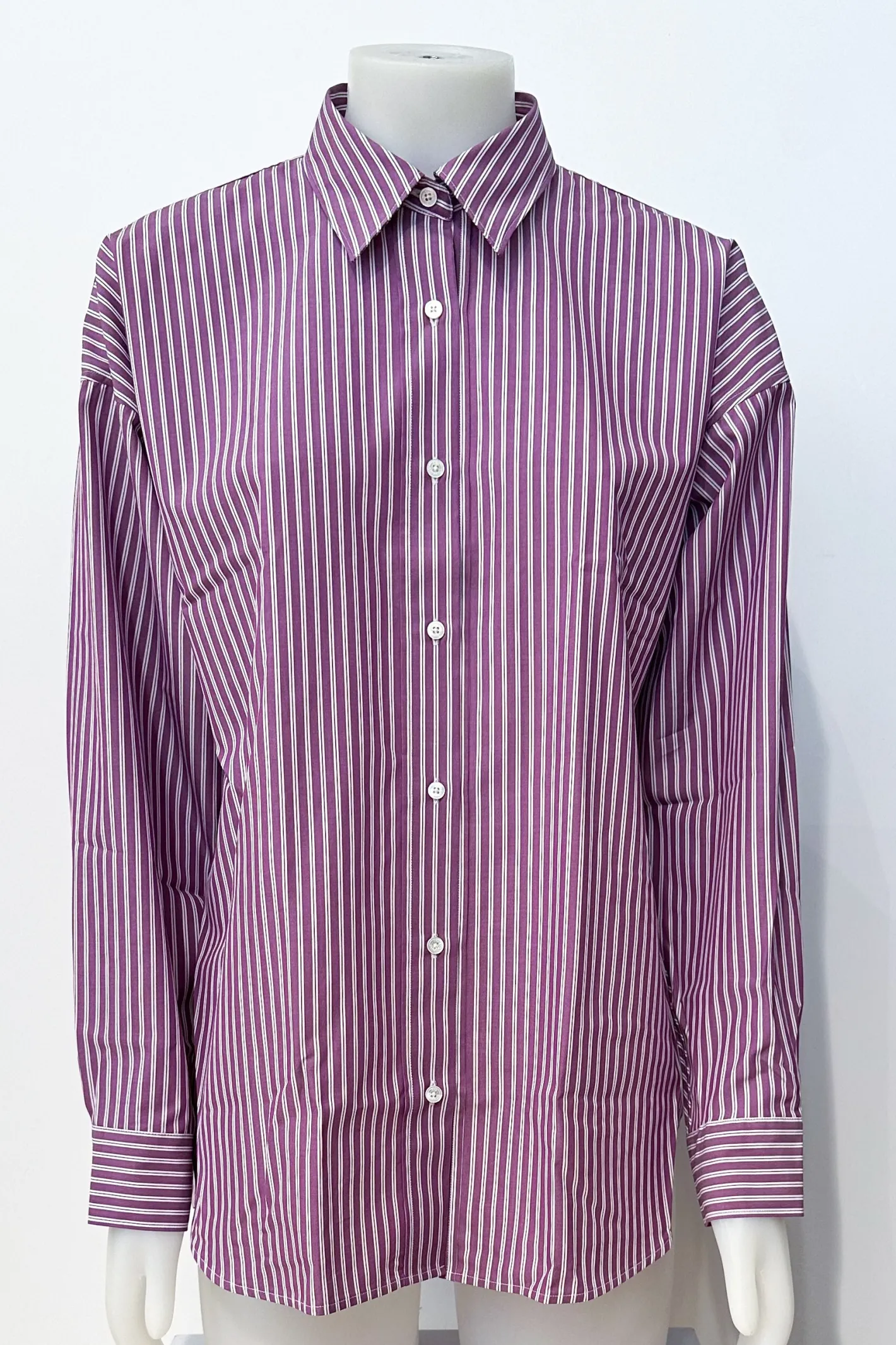 weit geschnittenüberschnittene SchulternManschettenärmelKnopfleisteHemdblusenkragenzwei Falten im Rückenrundgeschnitt…