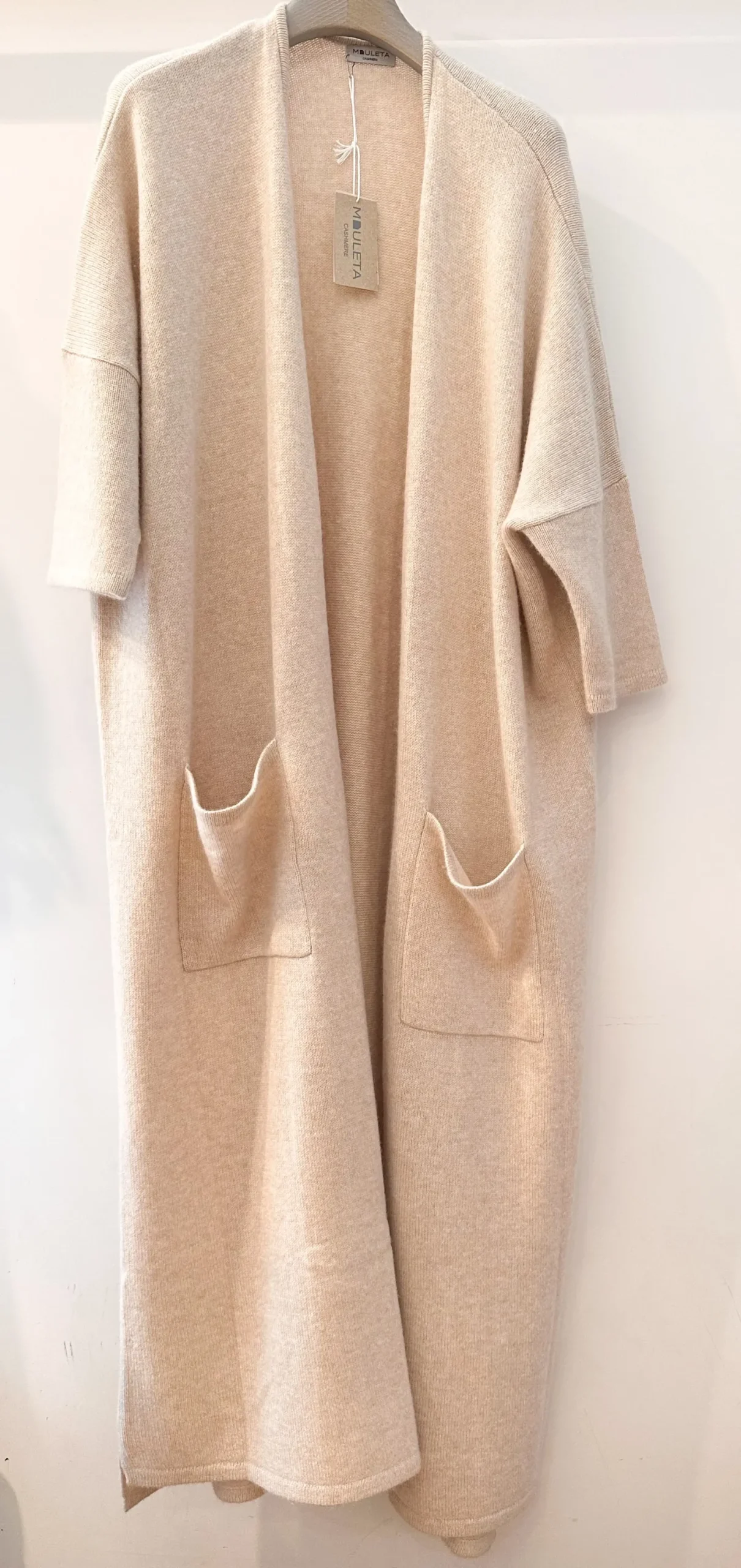 langer Strickmanteloffen getragen, ohne Verschlußaufgesetzte TaschenFällt groß aus !100% Cashmere