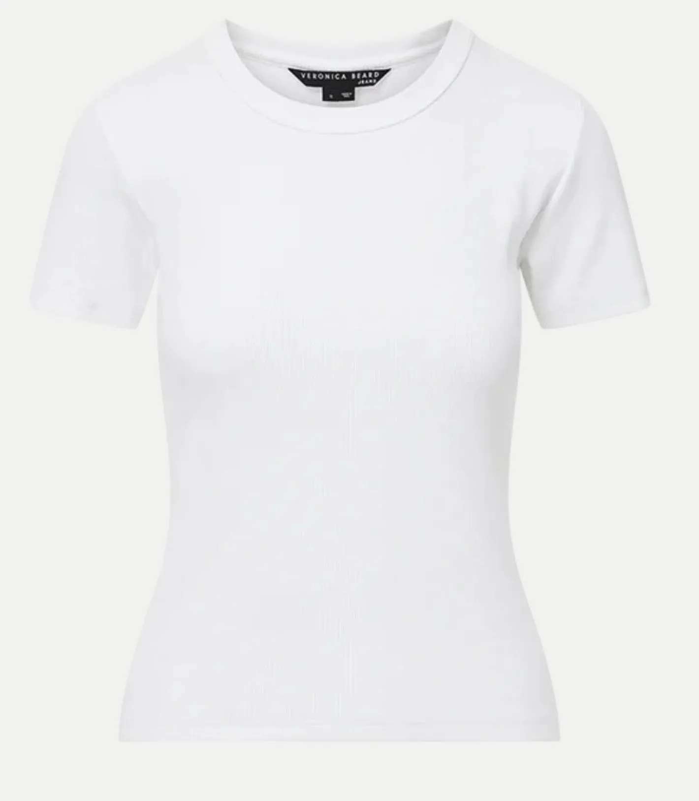 Rundhals Ausschnitthoch geschnittenleicht tailliertkurzer ArmFarbe Weiß97% Baumwolle 3% Elasthan