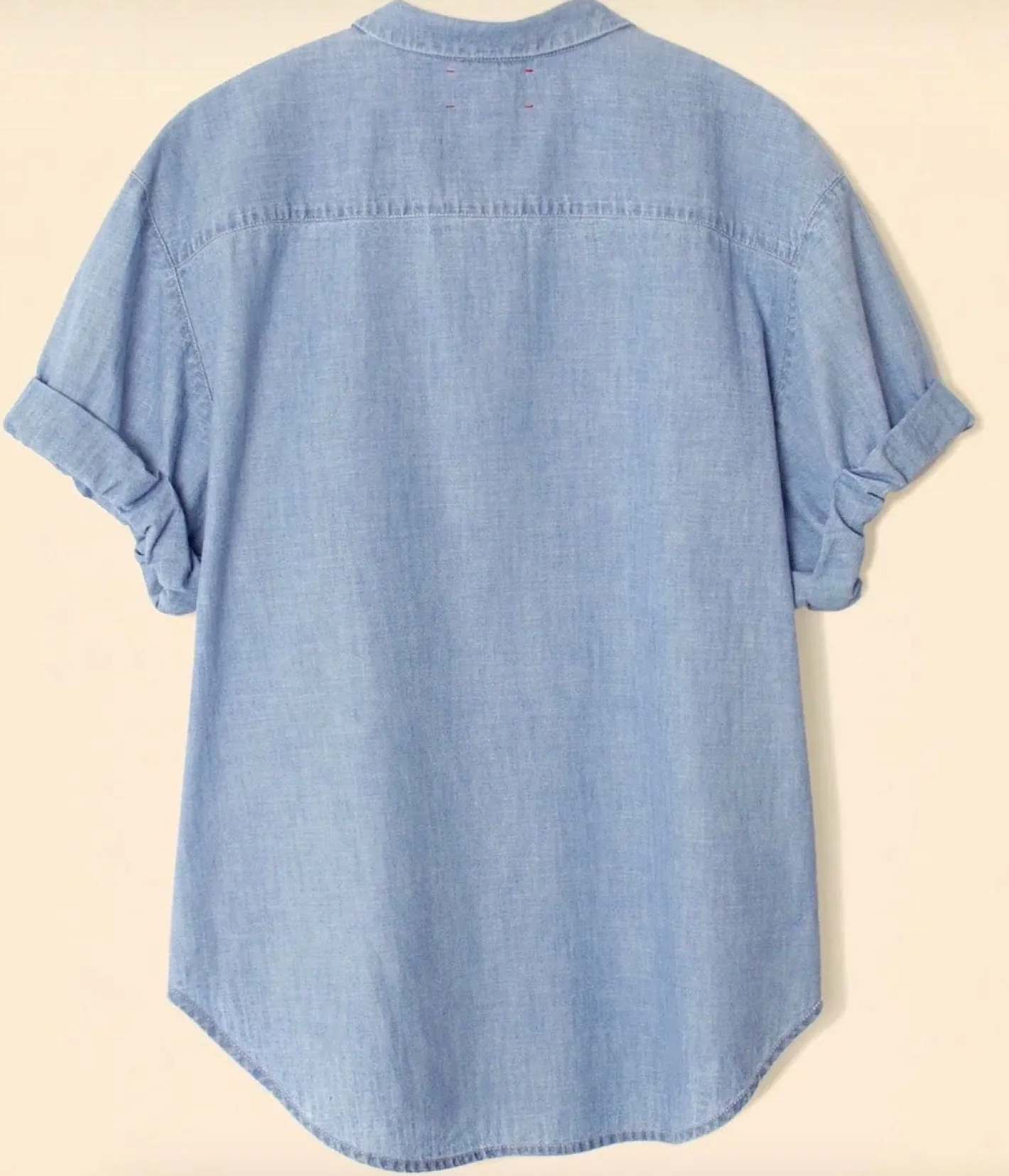 HemdbluseKrempelarmHermdblusenkragenabgerundeter Saumweicher Baumwoll ChambrayFarbe Dusty Blue100% Baumwolle