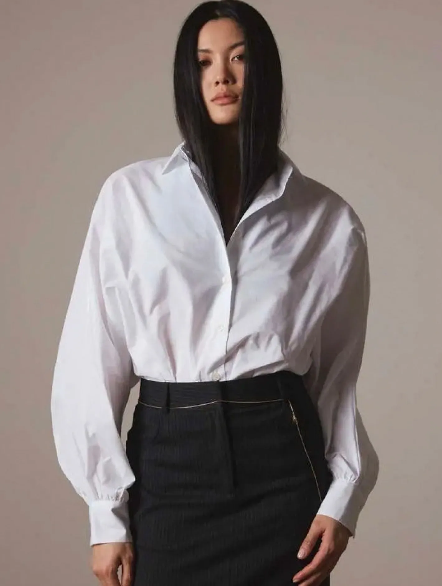 Blusenbody für Damen in WeißSchließt mit KnöpfenUmlegekragenRelaxed-SchnittWeniger Volumen als die Classic-AntoniaHo…