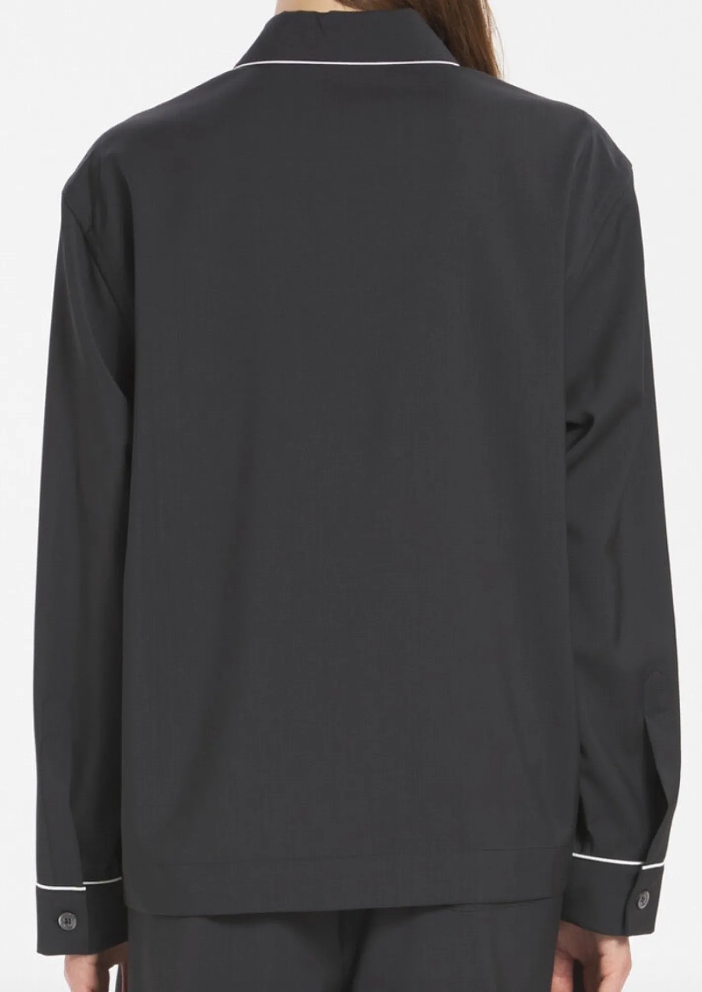 Bluse im Pyjama Styleabgesetzte, weiße PaspeldurchgeknöpftHemdkrageneine aufgesetzte BrusttascheManschettenFarbe Navy1…