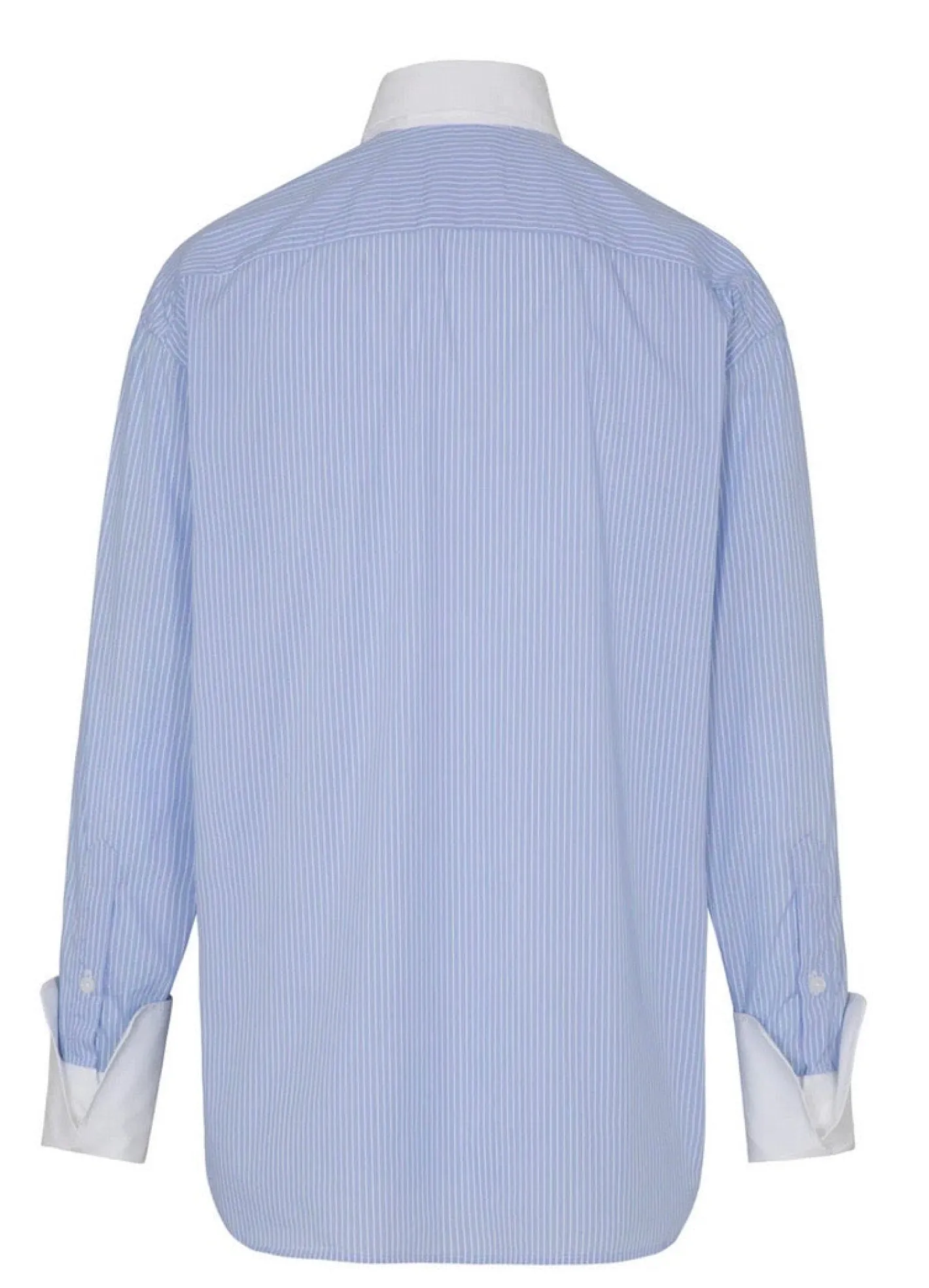 weißer abgesetzter Kragen und lange weiße Manschetten zum UmschlagenKnopfleiste leicht oversize geschnittenFarbe Blue…