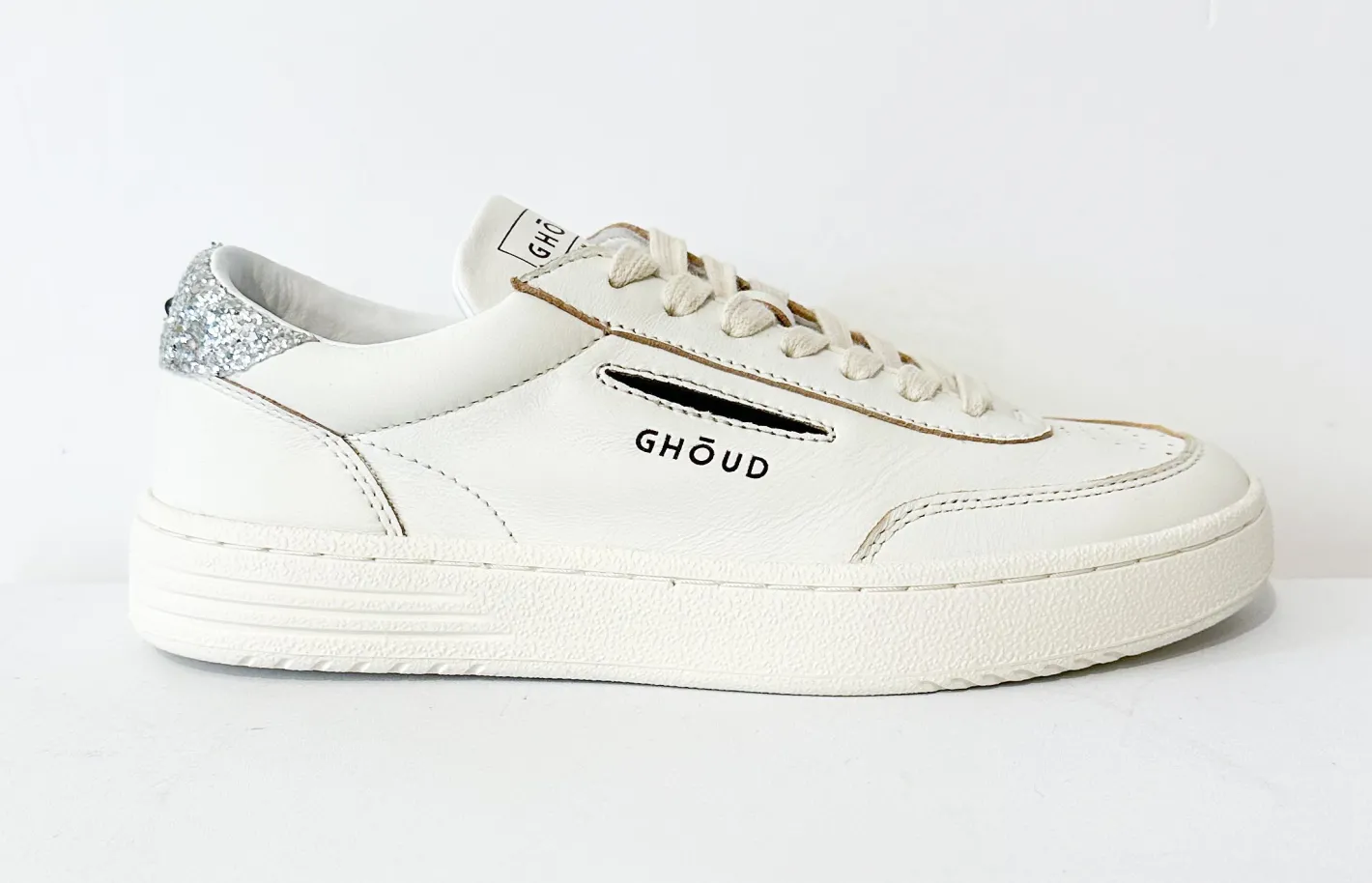 FUSSBETT: 100% LEDERSCHNÜRSENKEL: FLACHLAUFEN: GUMMIOBERMATERIAL: LAMINIERTES LEDERFarbe Weiß, Ferse mit Glitzer