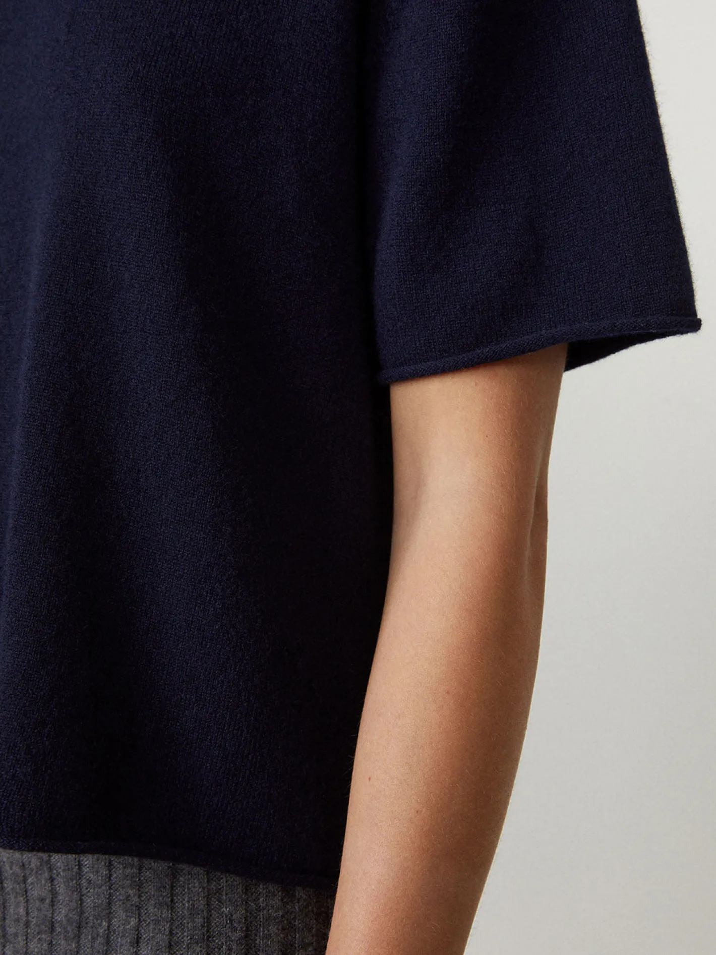 halbarm PulloverRundhals mit Ripp Bündchengerade geschnittenFarbe Navy100% Cashmere