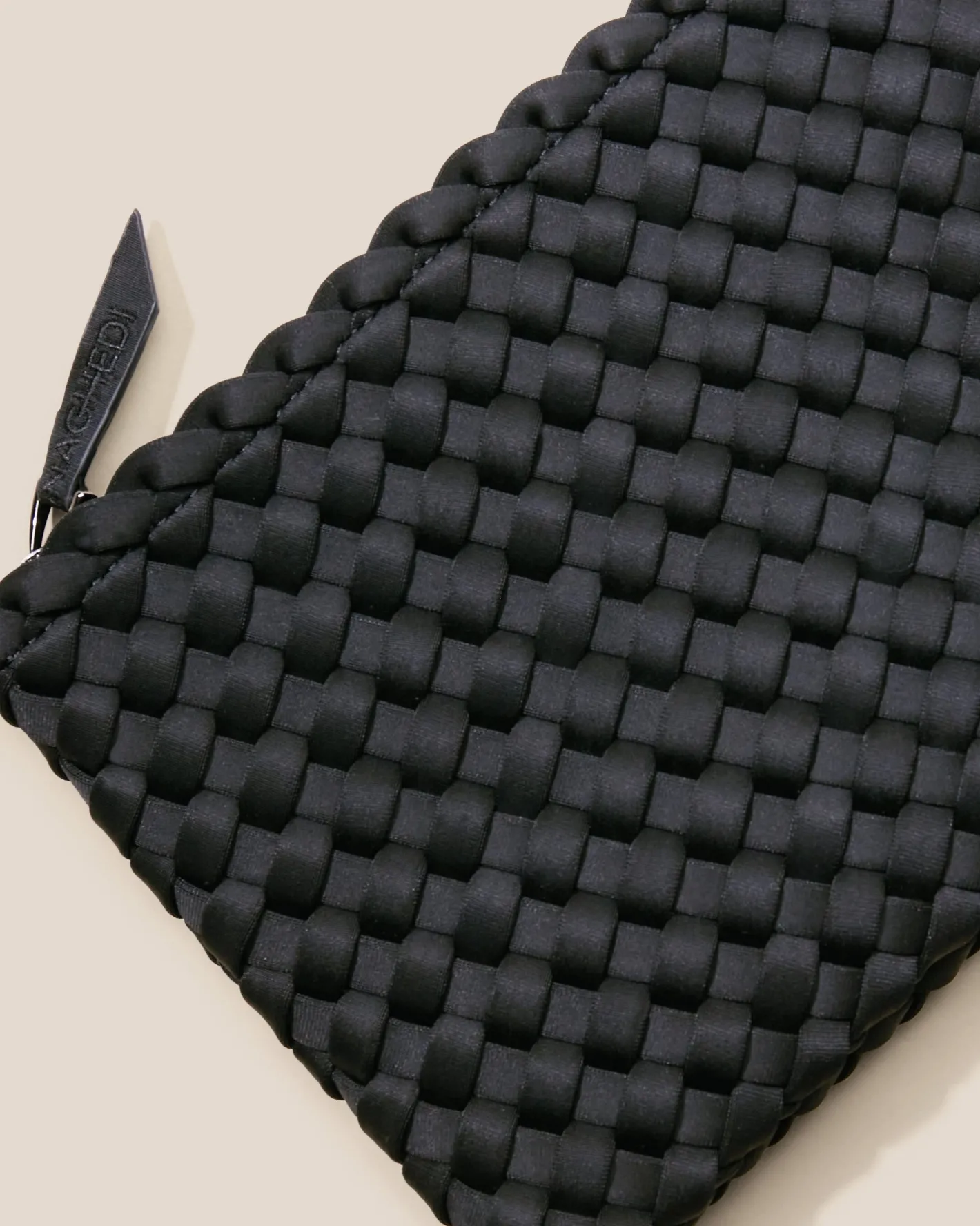 handgewobene Neopren Taschemit kleiner Innentaschedesigned in New YorkFarbe OnyxMaße 32cm x 21cm x 17cm